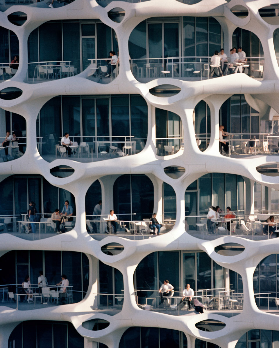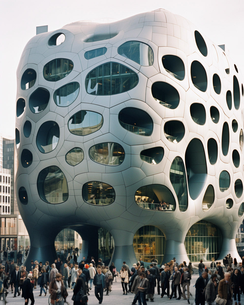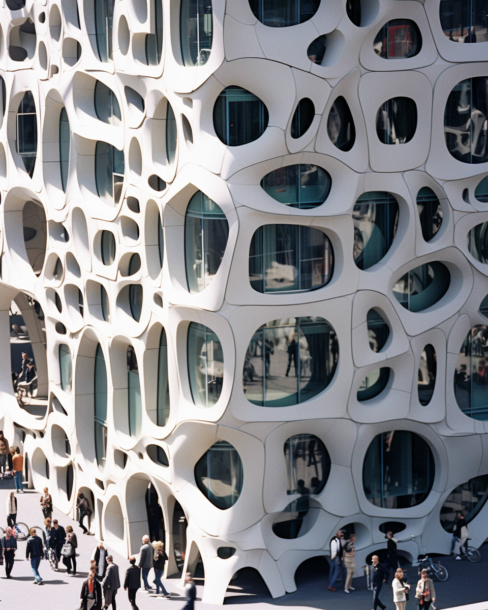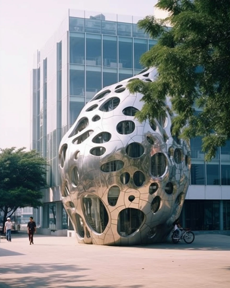 Modern biomorphic structures inspired by the intricate forms of marine flora and fauna. A visual structure where design converges with nature's elegance, creating a harmonious blend between the built environment and the organic beauty of the sea.