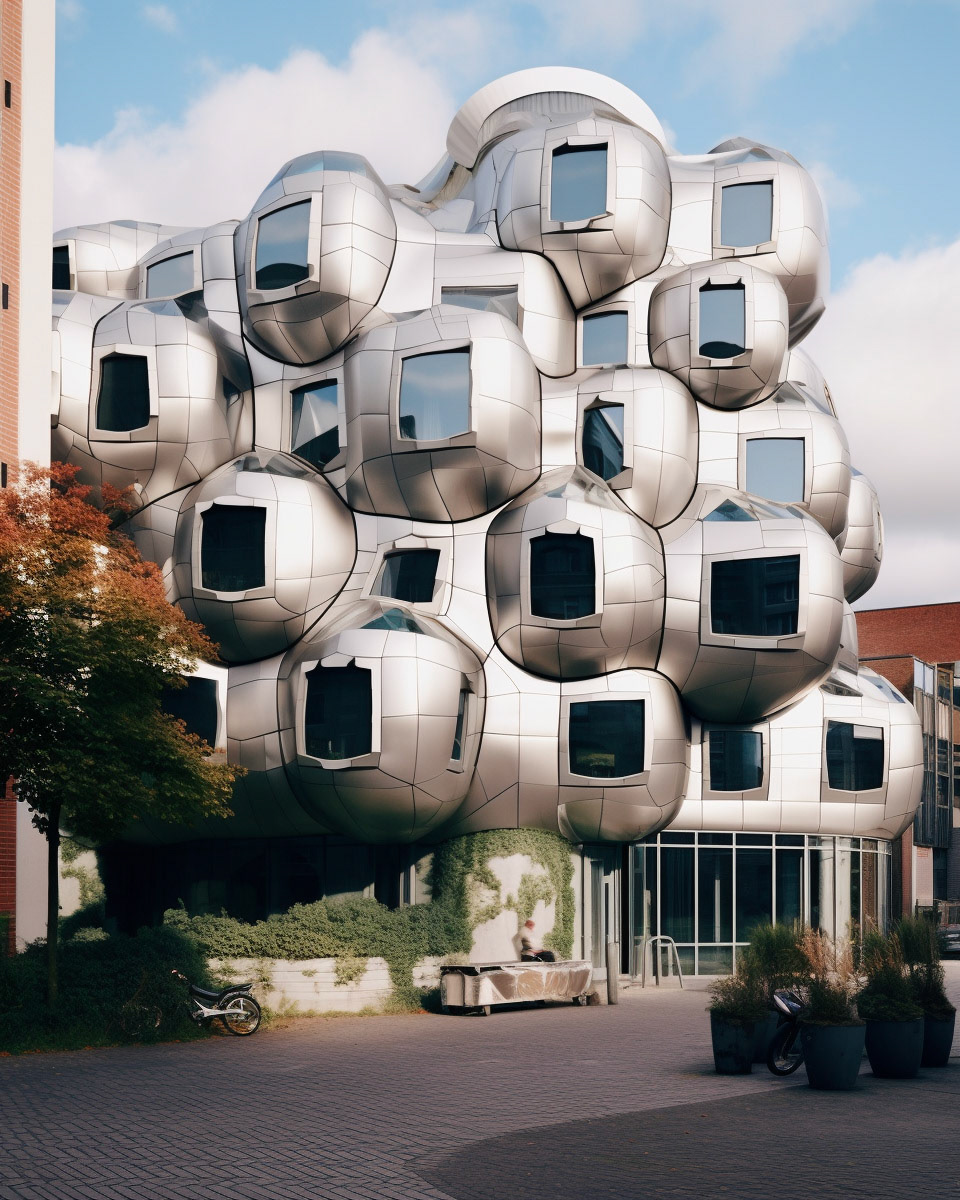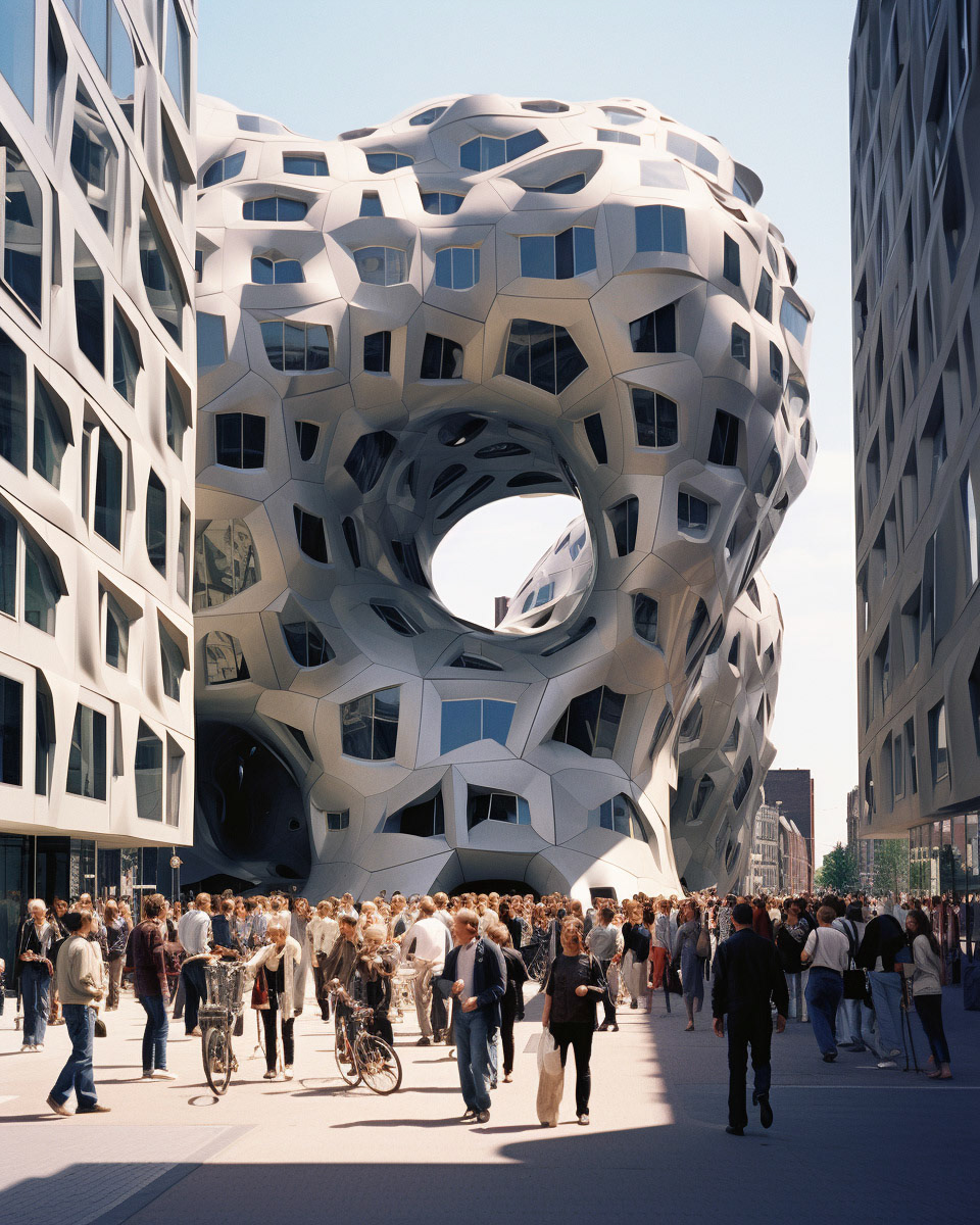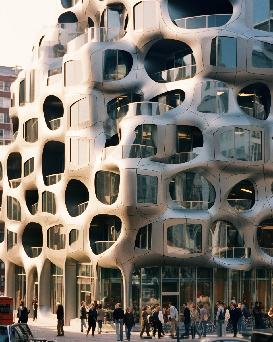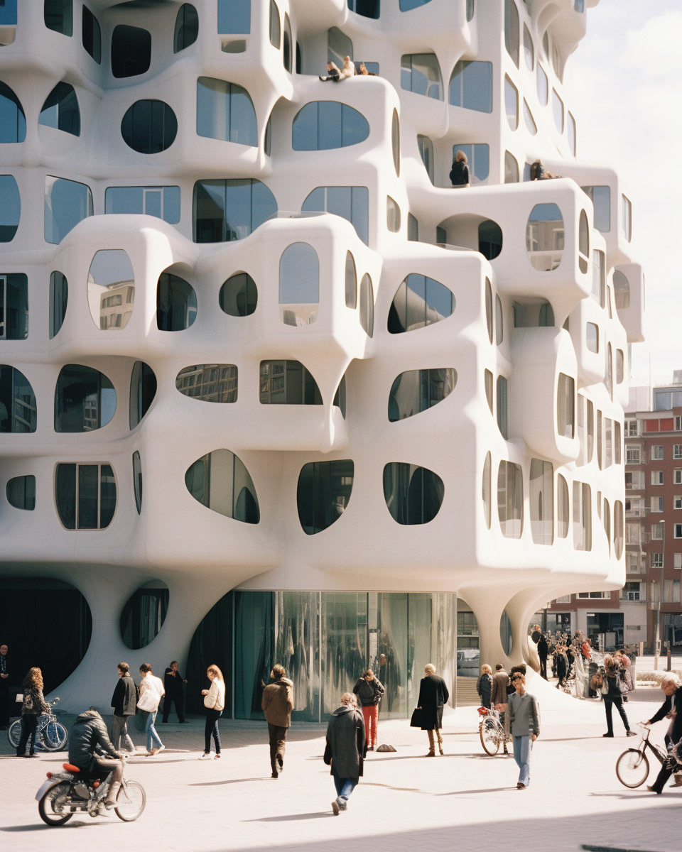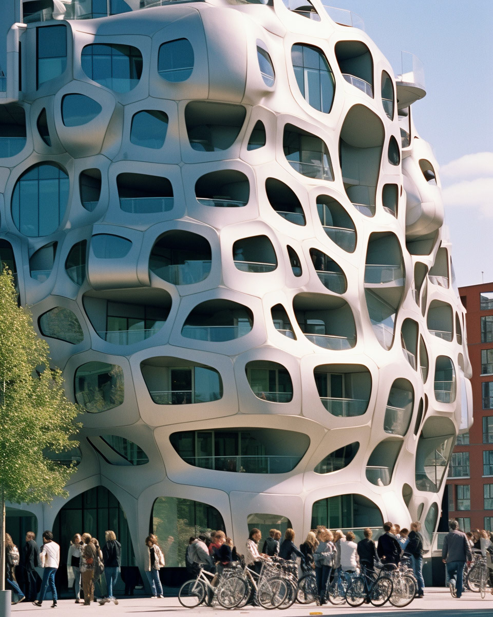 Modern biomorphic structures inspired by the intricate forms of marine flora and fauna. A visual structure where design converges with nature's elegance, creating a harmonious blend between the built environment and the organic beauty of the sea.
