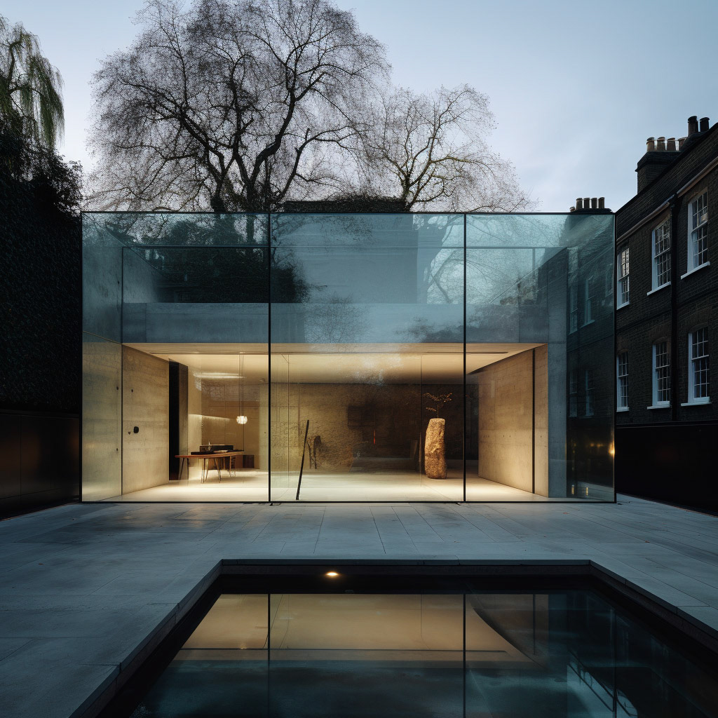 London's historic brick stones reborn: Modern glass architecture breathes new life, merging past and future. Lighting design transforms spaces, unveiling a seamless interplay between inside and outside views. A visual testament to the delicate circle of preservation and innovation.