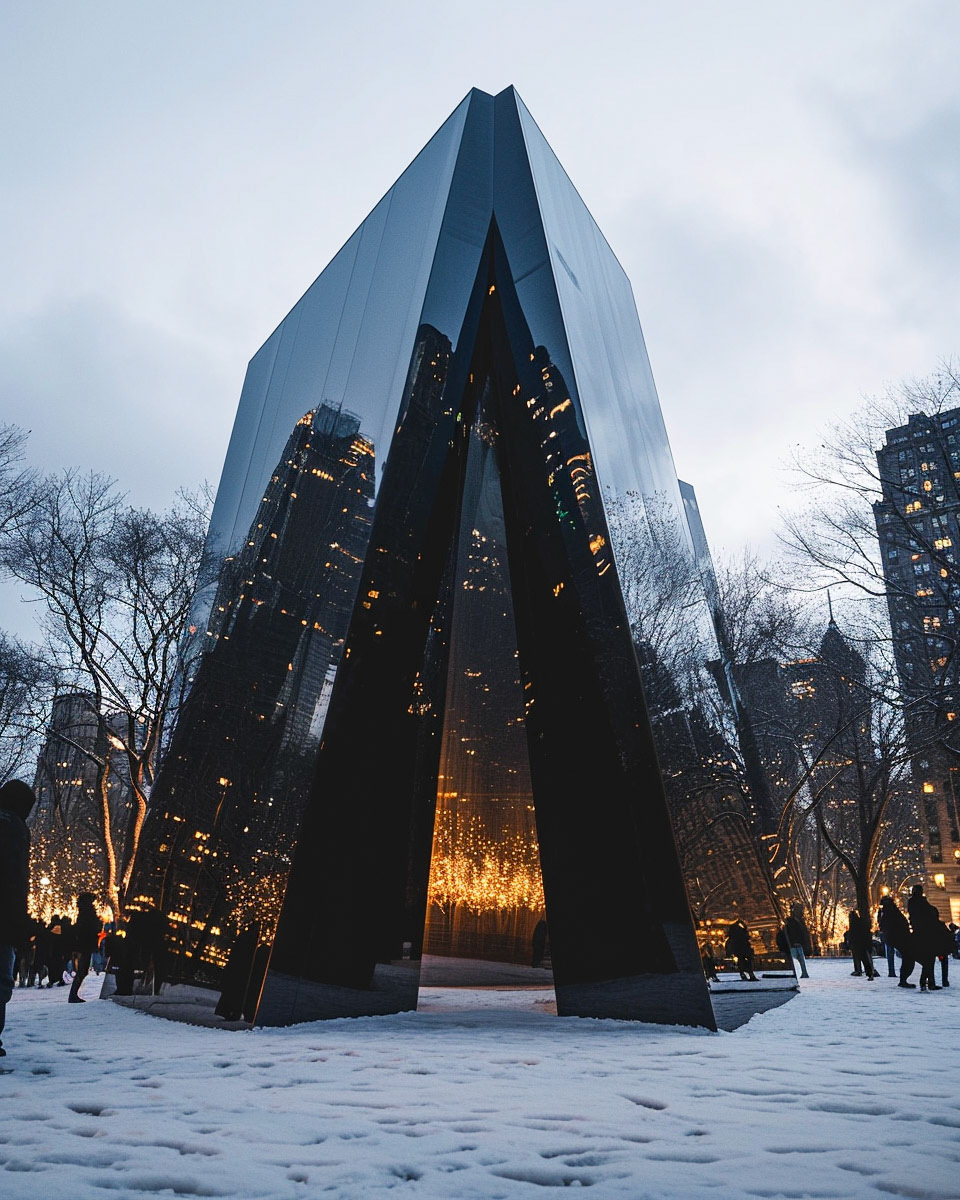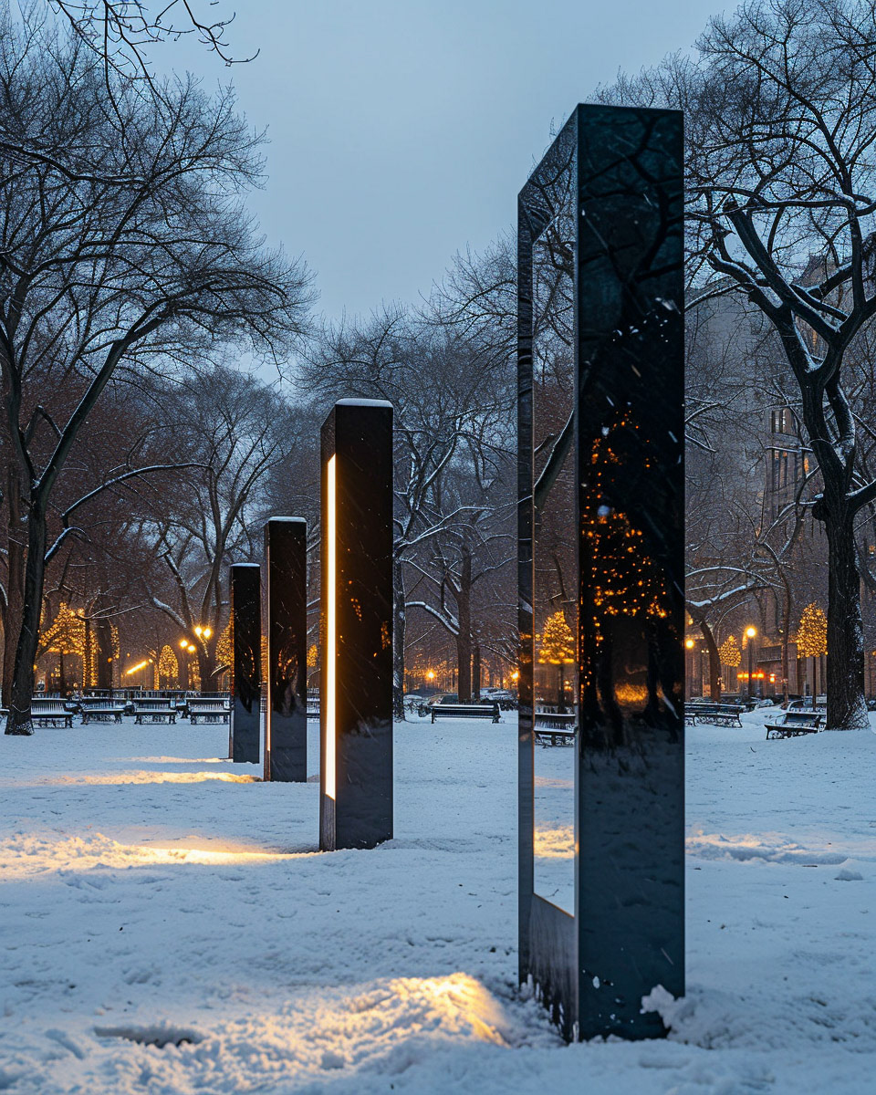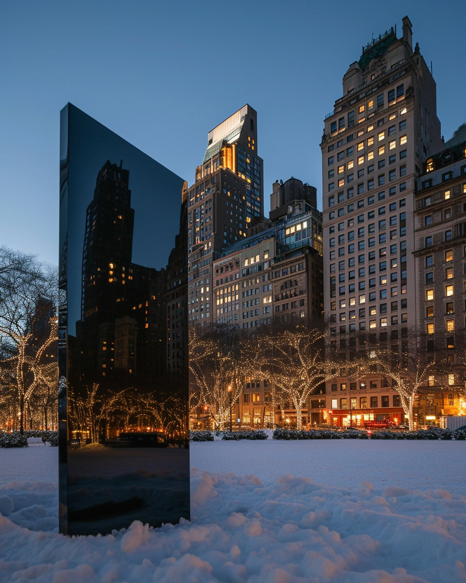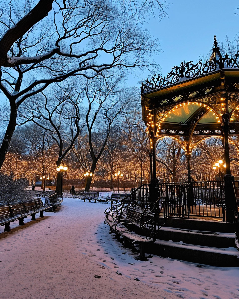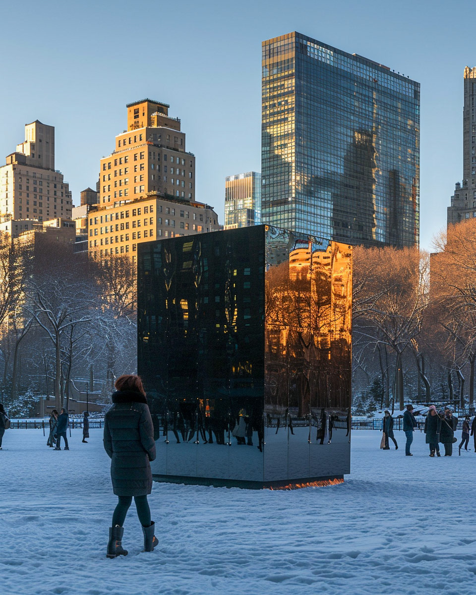 Wintery magic in Central Park: Architectural sculptures grace the landscape, a festive harmony of design and nature. A seasonal spectacle that transforms New York's heart into an enchanting canvas of architectural wonder during Christmas time.