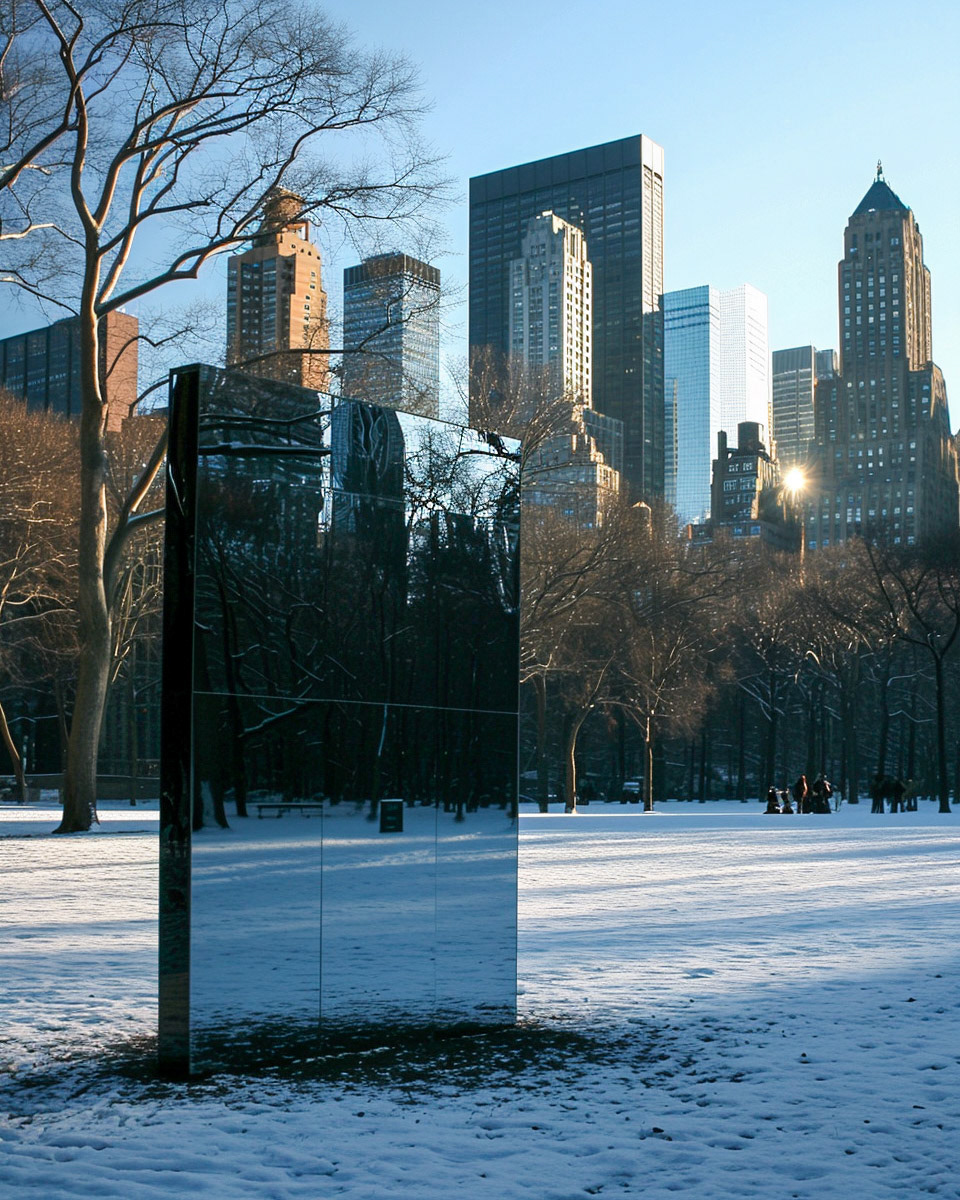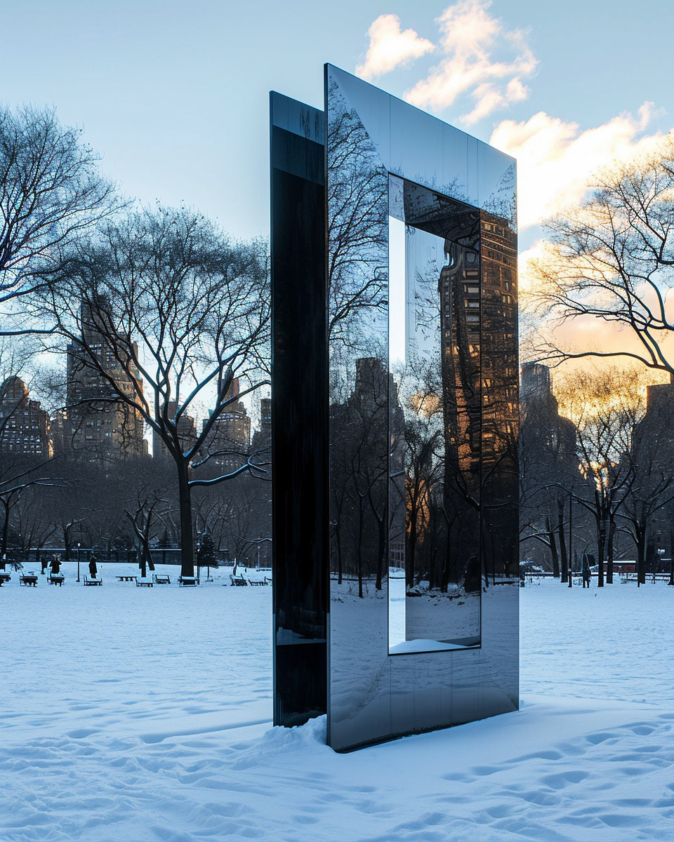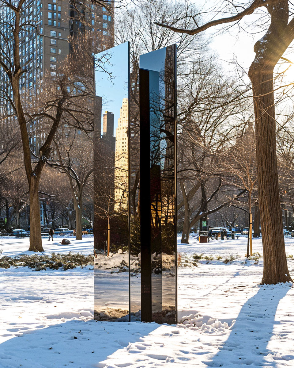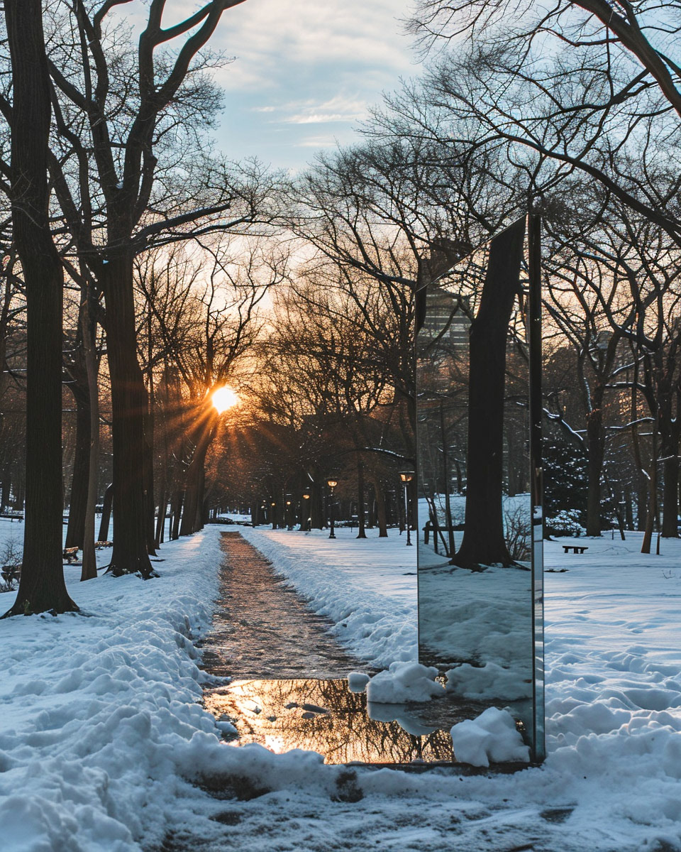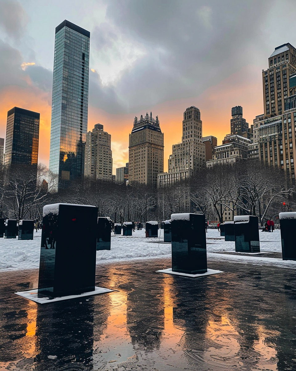 Wintery magic in Central Park: Architectural sculptures grace the landscape, a festive harmony of design and nature. A seasonal spectacle that transforms New York's heart into an enchanting canvas of architectural wonder during Christmas time.