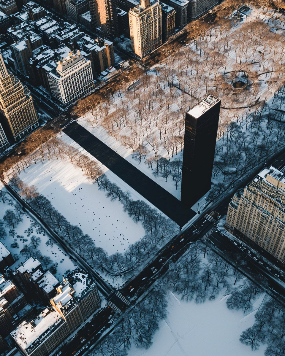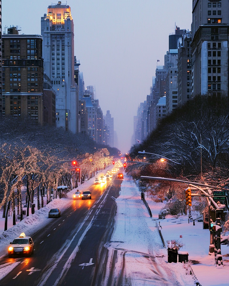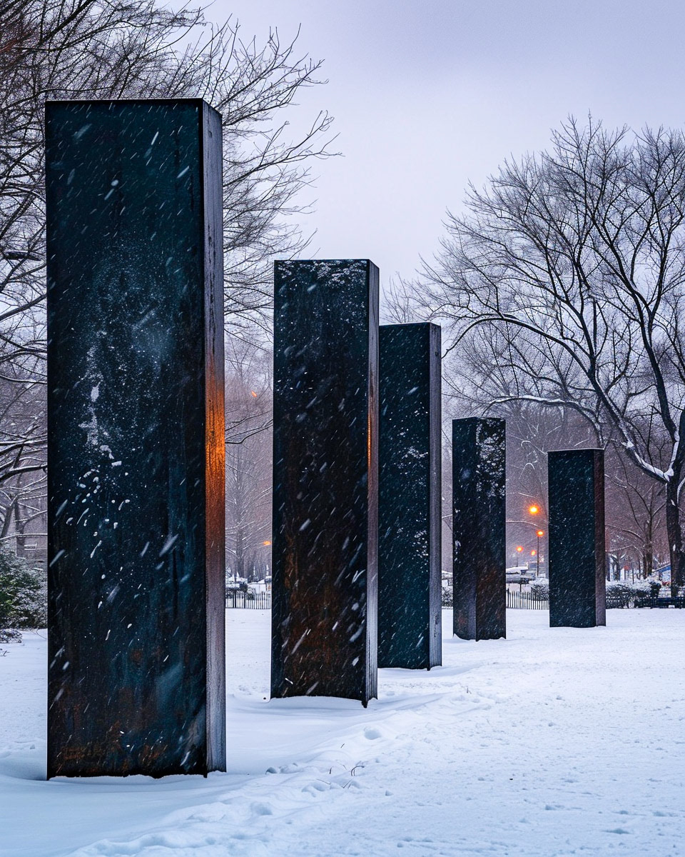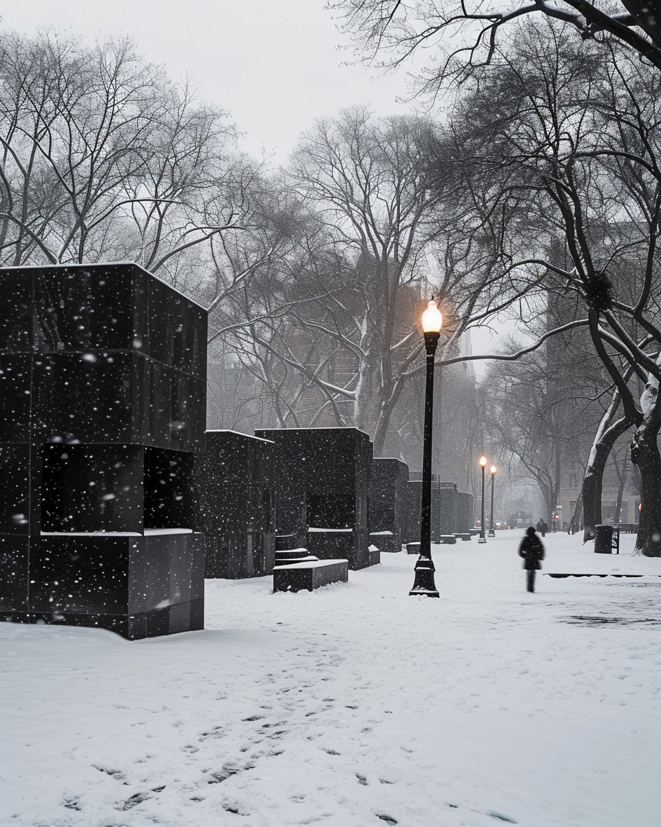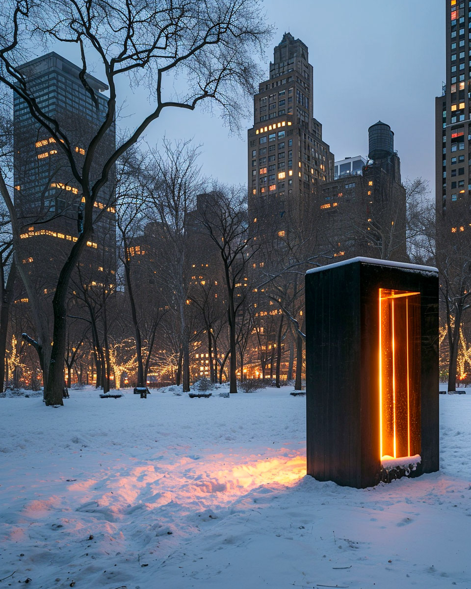 Wintery magic in Central Park: Architectural sculptures grace the landscape, a festive harmony of design and nature. A seasonal spectacle that transforms New York's heart into an enchanting canvas of architectural wonder during Christmas time.
