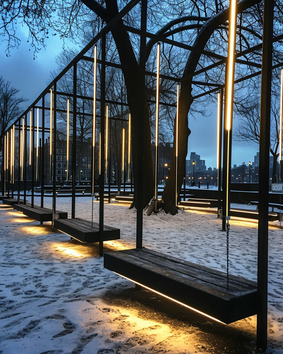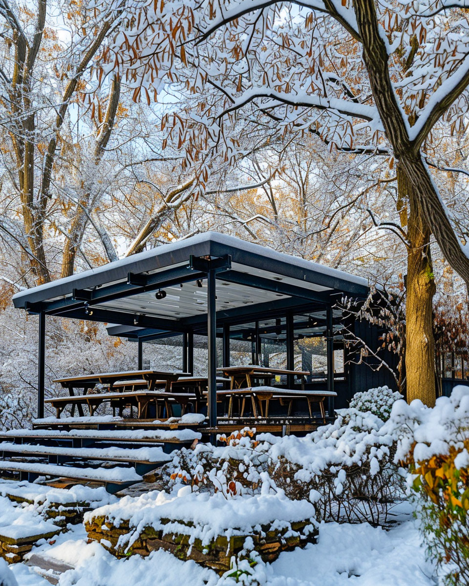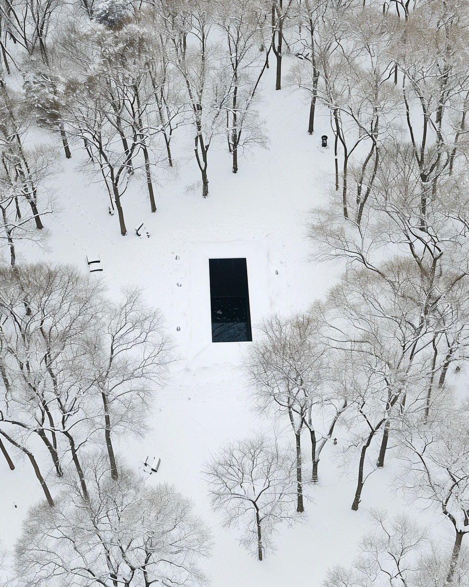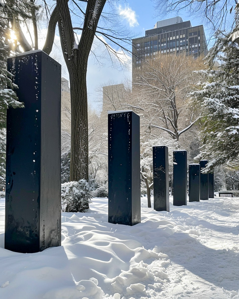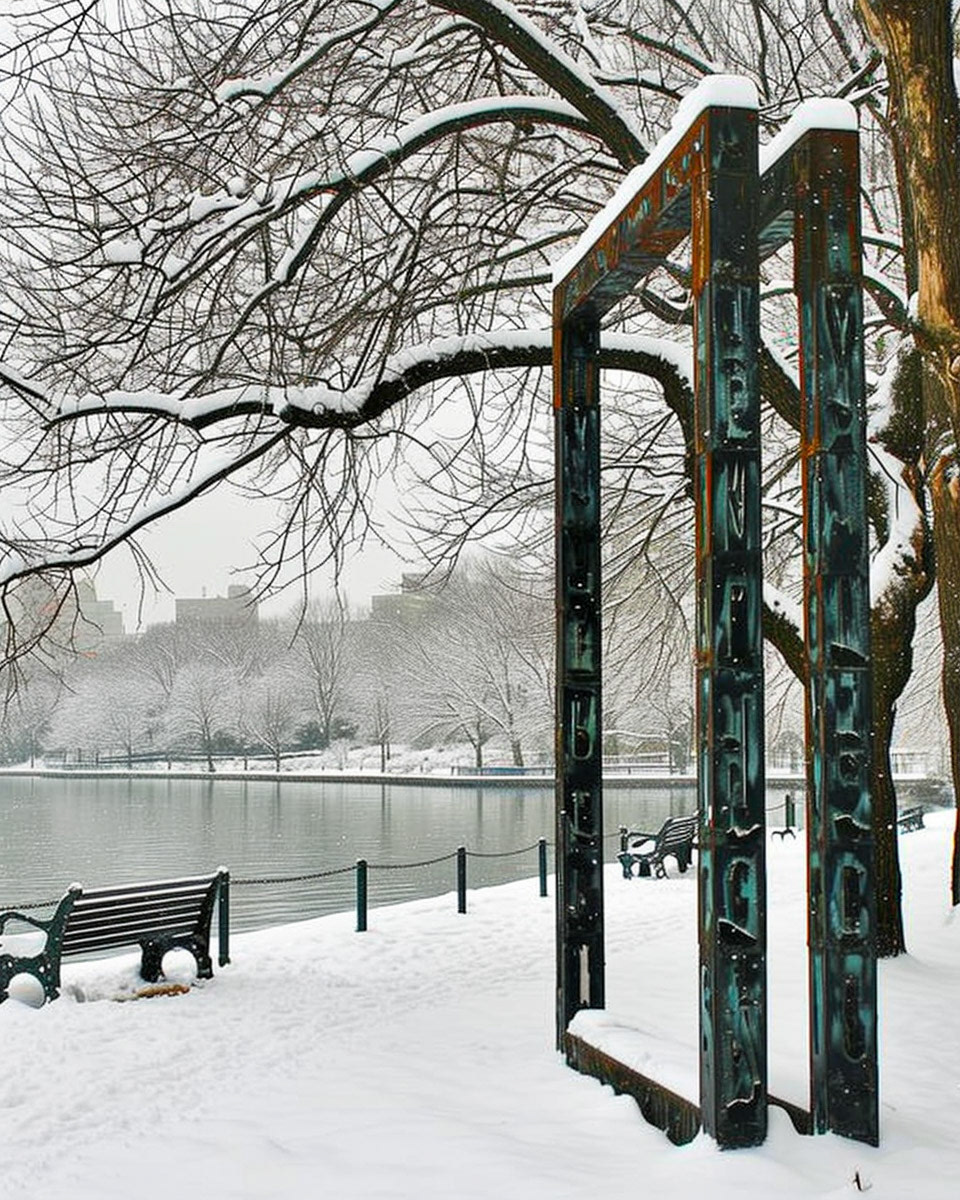 Wintery magic in Central Park: Architectural sculptures grace the landscape, a festive harmony of design and nature. A seasonal spectacle that transforms New York's heart into an enchanting canvas of architectural wonder during Christmas time.